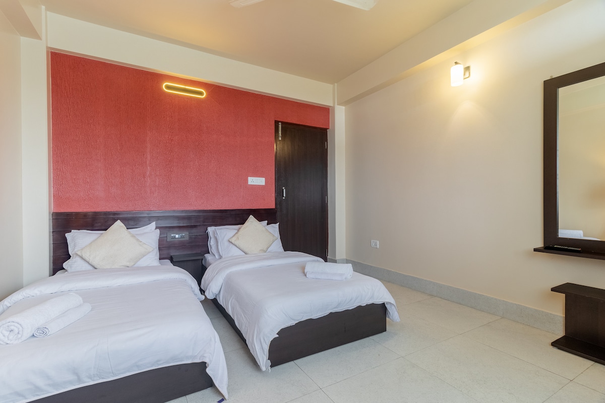 Sunny Side es un encantador refugio independiente en el corazón de Kalimpong, cuidadosamente diseñado para familias que aprecian tanto la comodidad como la tranquilidad. Ubicado en un entorno natural sereno, ofrece los suaves sonidos de la naturaleza y el aire fresco de la montaña, pero permanece a solo 500 metros, o a un fácil paseo de cinco minutos, de la vibrante carretera principal. Aquí, puedes disfrutar de lo mejor de ambos mundos: un aislamiento tranquilo y un cómodo acceso a tiendas, cafés y atracciones locales.