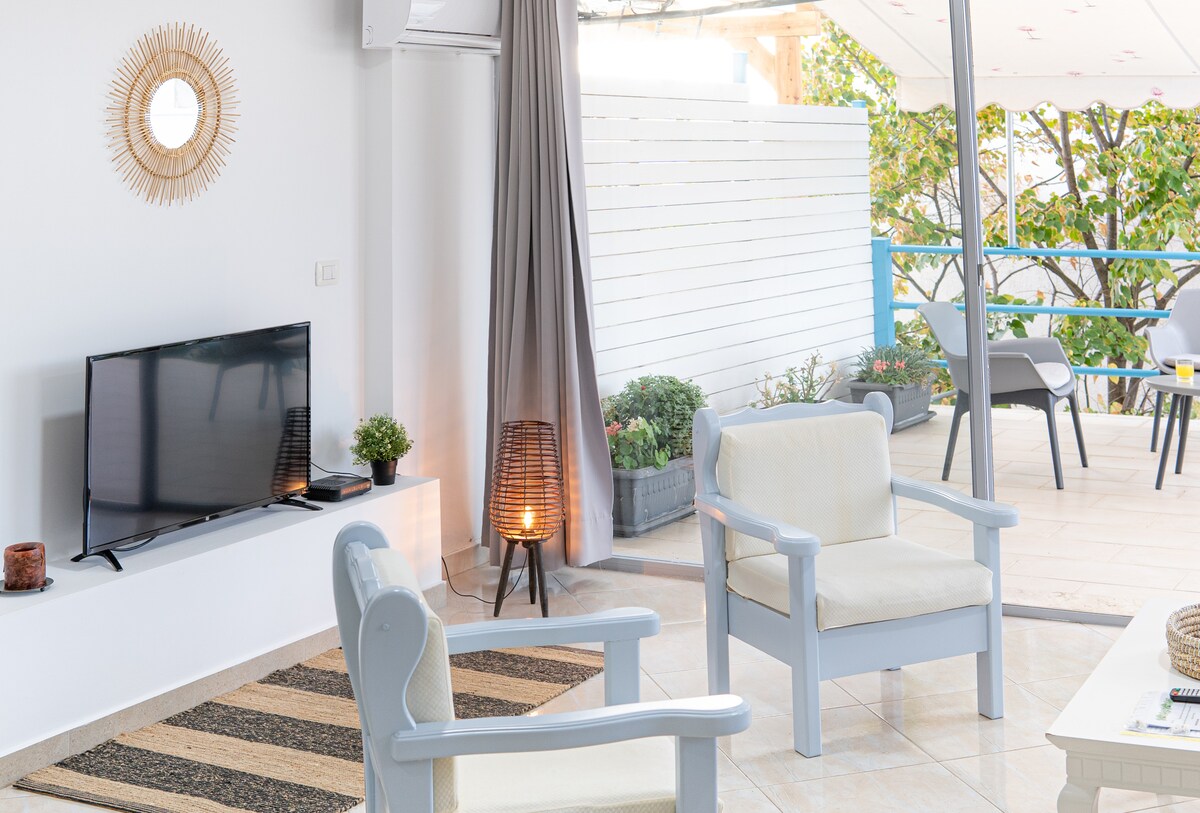 Con gran territorio privado, ubicación frente al mar y vistas impresionantes al mar Jónico, White Residence es un lugar ideal para relajarse. Escucha el susurro de las olas y disfruta de una copa de vino mientras ves una espectacular puesta del sol desde tu terraza. ¡De noviembre a abril, una estancia de un mes es solo de 600 euros/mes!
