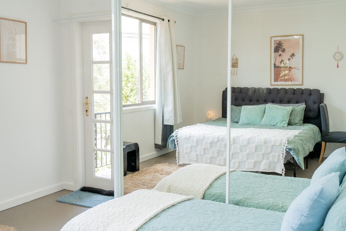 Private/ self-contained flat, full kitchen/laundry and close walk to Newport and Bungan Beaches. It is a great spot if you're looking to get away to the Northern Beaches for a few days or work remotely at beach-side location. The Bus stop is beside the house for City Express (Approx 1 hr) or Mona Vale for B1 and Manly connections. Keynote: this is a self-contained separate studio attached to the main house, we are close to Barrenjoey road and there is traffic noise.