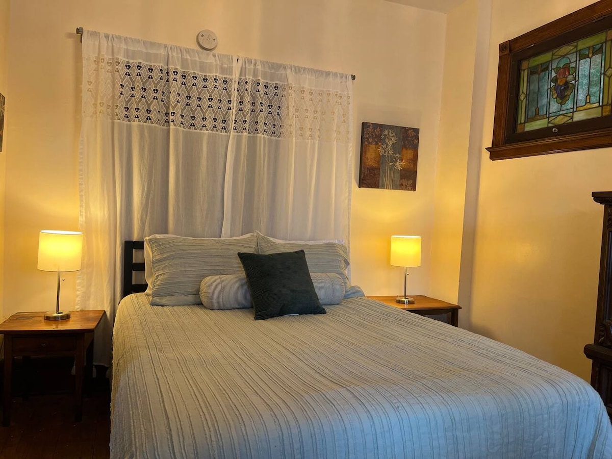 Esta es una unidad de un dormitorio en un edificio de 3 unidades con 1 plaza de aparcamiento. El espacio está completamente separado de las otras unidades del edificio. La sala de estar y el dormitorio del tercer piso tienen una gran vista sobre los edificios circundantes. Hay un baño espacioso, con toallas limpias y frescas, y algunas necesidades básicas, secador de pelo, etc. La cocina es nueva y cuenta con estufa, nevera y microondas. Se proporcionan todos los utensilios de cocina y algunos artículos básicos para cocinar. Se proporciona una cafetera de filtro.