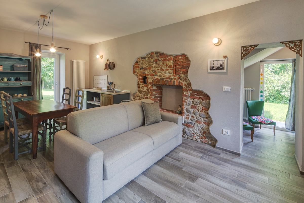¡Bienvenidos a la colina de Happy Hill y a la naturaleza! La casa, que consta de dos apartamentos, es una antigua granja recién reformada y decorada con esmero. El apartamento "Bambù" se encuentra en la planta baja y consta de una sala de estar con cocina americana y sofá cama doble, una pequeña sala de lectura, un baño y un dormitorio doble. Dispone de un hermoso y amplio porche amueblado. La casa está rodeada por un gran parque con árboles centenarios donde pasear y relajarse.