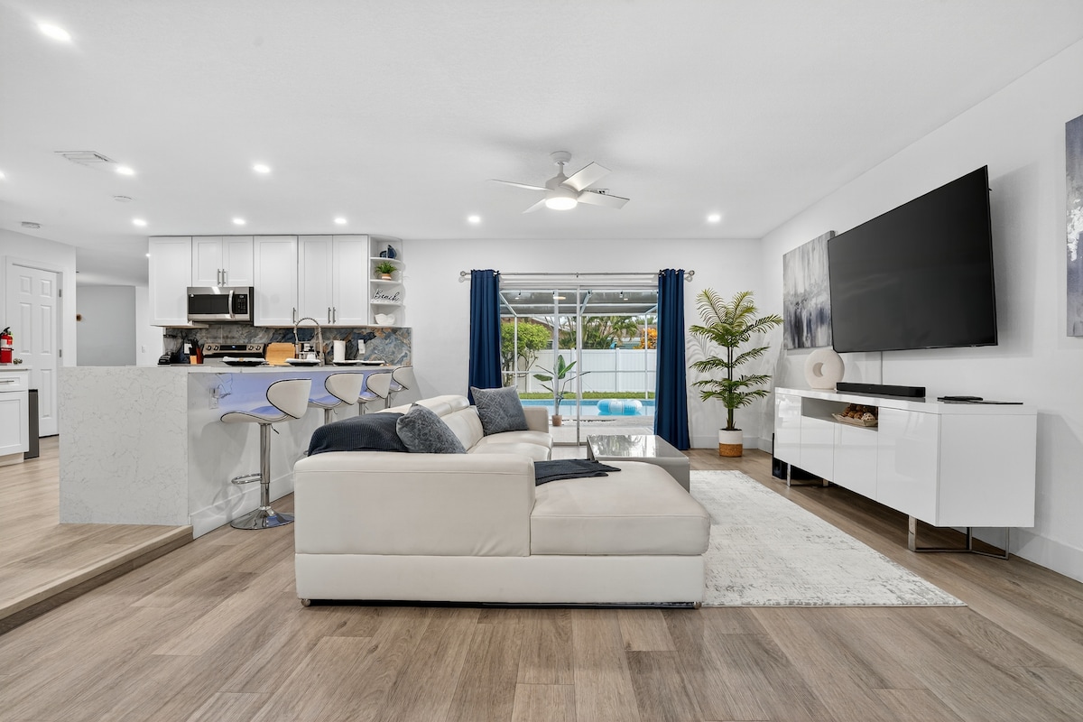 Te damos la bienvenida a tu escapada a Coconut Creek, ¡a solo 15 minutos de Pompano Beach! Esta moderna casa totalmente renovada está diseñada para la comodidad y el estilo. Con 3 amplios dormitorios, 2 baños relucientes, una sala de estar iluminada por el sol y un salón con mesa de billar, hay espacio para todos. Sal a la piscina privada cubierta y al oasis al aire libre, perfectos para que la familia y los amigos se relajen o jueguen. Con ropa de cama recién lavada, una cocina totalmente equipada y mucho espacio, ¡esta es la escapada definitiva que querrás reservar!