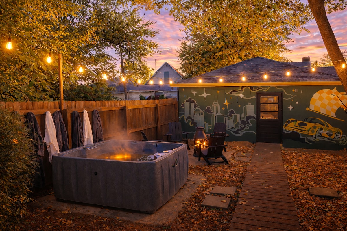 ¡Te damos la bienvenida a Stay in Color! Este luminoso y vibrante refugio 2BR, 2BA Indy es perfecto para parejas o familias pequeñas. Disfruta del porche estilo solárium, el patio trasero totalmente vallado con chimenea, hamaca y noches de cine al aire libre. A pocos minutos del centro, Indianapolis Motor Speedway y Fall Creek Greenway. En el interior encontrarás un diseño audaz, una cocina completa, un espacio de trabajo y televisores inteligentes en todas las habitaciones. Se admiten mascotas y recién remodelado: ¡esto es Indy que vive con personalidad!