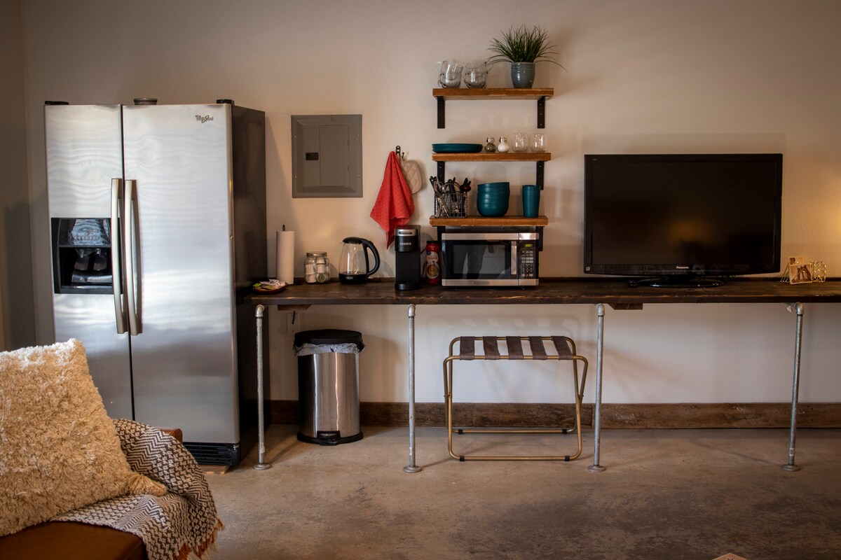 Experience luxury at an affordable price in downtown Webb City's Crow's Nest! This meticulously cleaned and renovated loft features a Nectar mattress, comfy chairs, classy bathroom, and a fully equipped kitchenette. It's 2 minutes off 249, close to boutiques, food, trails, theater, and the Praying Hands. Only 15 min to Joplin or Carthage. High-speed internet, pet-friendly, laundry, and a fenced yard. The Crow's Nest offers the most lavish and economical stay in Webb City. Book now!