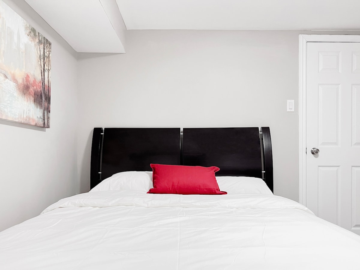 ¡Apartamento totalmente renovado, moderno, luminoso, lujoso y espacioso (más de 1800 pies cuadrados) de 2 dormitorios, 2 baños, techo alto, entrada independiente y patio para tu próximo hogar acogedor lejos de casa! ¡Con valoración de 5 estrellas y entre el 5 % de los mejores alojamientos en AirBnB! Lo más céntrico de la zona metropolitana de Toronto. Estarás cerca del aeropuerto de Pearson, la autopista 401/404/407, centros comerciales, tiendas de comestibles y una gran variedad de restaurantes de moda, cines, parques y rutas de senderismo/bicicleta por todas partes. ¡Reserva con confianza!