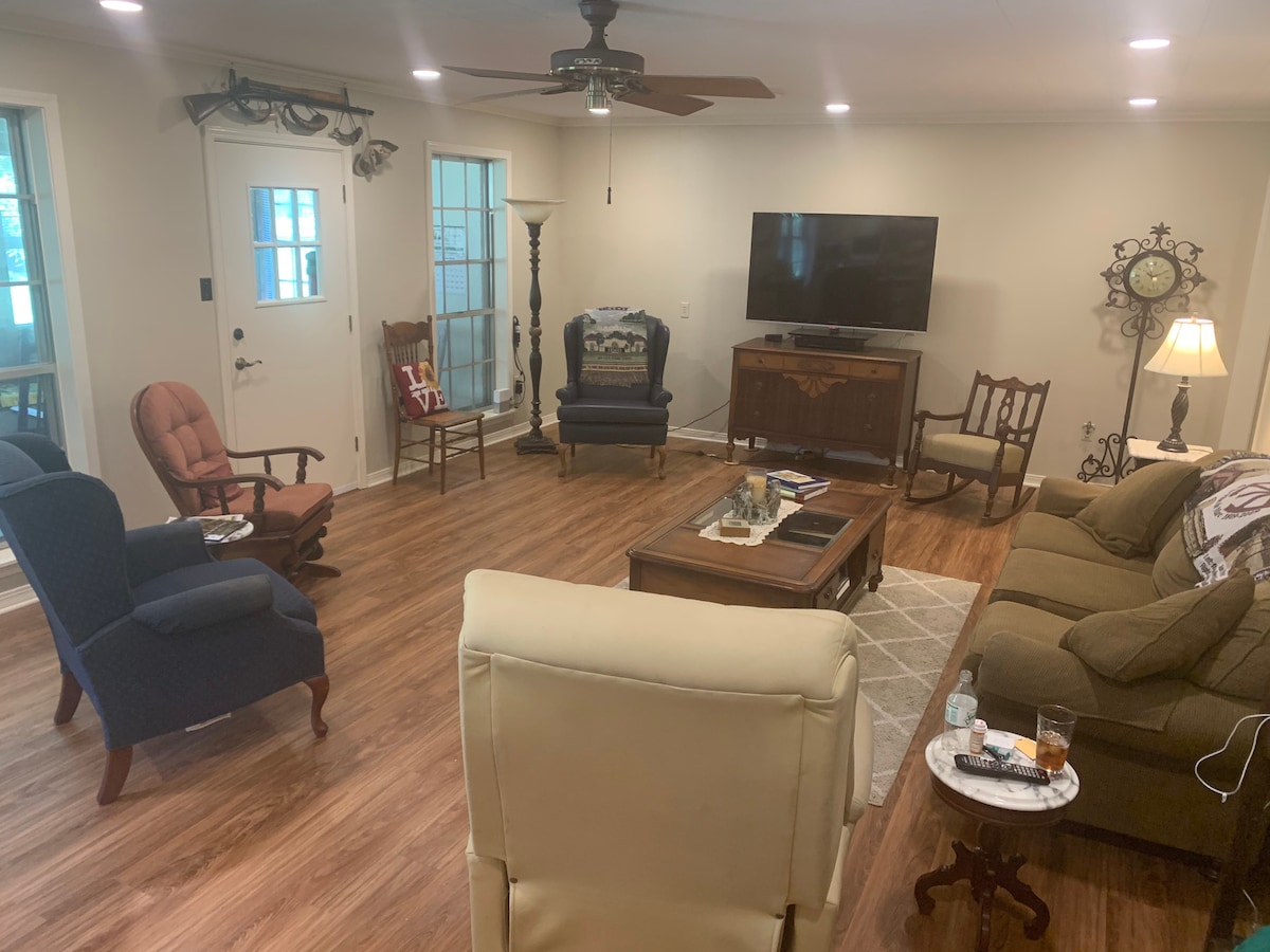 Entorno rural tranquilo situado en una granja de 20 acres. Ubicado en la hermosa Bayou des Glaises de Luisiana. Barrio propicio para correr, caminar, andar en bicicleta en kilómetros de la sombra de la carretera negra que es paralela al pantano. Spring Bayou WMA se encuentra a solo 5.5 millas de distancia, junto con el lanzamiento de barcos, senderos para vehículos todoterreno, caza, pesca, senderismo, etc. El wifi fiable (con muchos servicios de streaming populares incluidos o usa el tuyo propio) y una cocina bien surtida hacen que el tiempo que pasas en el interior sea agradable.