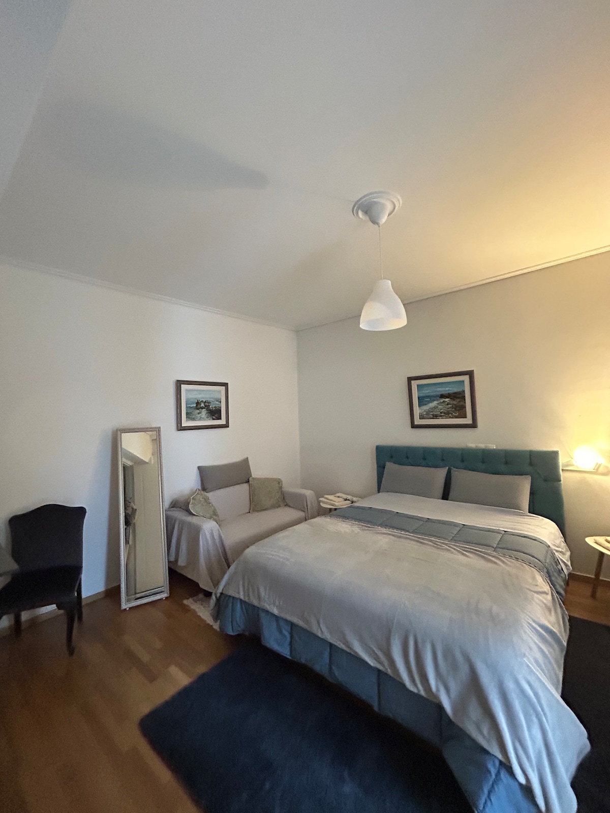 Un ático de estilo real verdaderamente único a solo 8 minutos del aeropuerto de Atenas. Al igual que un museo privado, cuenta con antigüedades, camas extragrandes de 200×220, una gran terraza privada y acceso a la azotea para disfrutar de vistas panorámicas y avistamiento de aviones. Ideal para familias, con mucho espacio y carácter que no encontrarás en ningún otro lugar de la zona. Las puertas de vidrio inundan el espacio con luz natural y enmarcan el cielo abierto, una estancia única que combina el encanto clásico con las raras vistas de la ciudad.