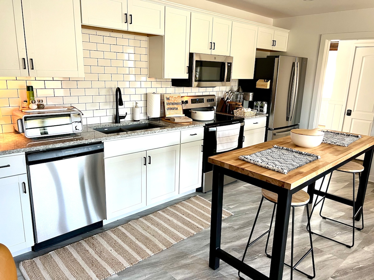 ¡Disfruta de una escapada elegante y tranquila que está convenientemente a solo 14 minutos del centro de Knox! Relájate bajo la pérgola con una hermosa vista a las montañas cercanas, o si te sientes activo, House Mountain Trail está a solo diez minutos. Una cocina totalmente equipada, TV inteligente de 50 pulgadas y lavadora y secadora cubrirán todas tus necesidades básicas. Alójate en nuestro alojamiento y evitarás el tráfico de Knoxville para llegar a Pigeon Forge en solo 40 minutos. ¡El registro de entrada y salida fácil y autónomo hará que tu estancia sea completa!