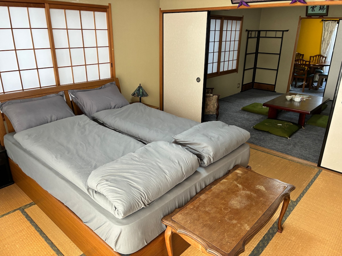Experimenta a tus amigos y la vida japonesa genuina con tu familia. No dudes en ponerte en contacto con nosotros, como 12 personas, un gran lugar para cavar en tu puesto. ¿Hay una fiesta para eventos al mismo tiempo? Cocina del sistema, nevera, horno microondas,utensilios de cocina, tiene que ofrecer, como vajilla. Dado que hay un loft, es posible aceptar la organización. La ropa de cama estará disponible al estilo japonés. Es una casa del casco antiguo, pero ya es toda el agua alrededor de la renovación.