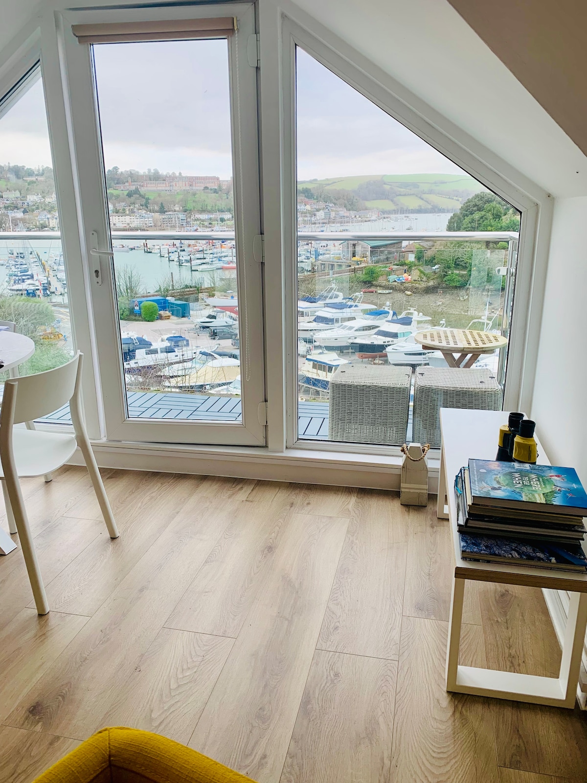 THE LOFT has the most stunning view of the harbour and private parking on-site! Sit & relax on the balcony or sofa & watch the comings & goings on the River Dart (Paddle Steamer, cruise ships & steam train).Centrally located in Kingswear across from the river with no hills to climb you'll be walking distance from the coastal path and ferries.All tourist attractions are close by with passenger & car ferries a few minutes walk away for a short river trip to Dartmouth.