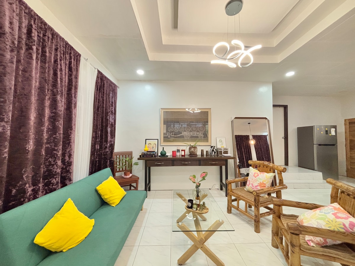 Tu elegante hogar lejos del hogar: ¡cómodo, cómodo y cuidadosamente diseñado! A ✈️ 5 minutos en auto del aeropuerto. A 🛍️ 10 minutos a pie de un centro comercial, lugares de comida rápida y cafeterías acogedoras Diseño 🏡 cálido y moderno con detalles de madera, iluminación elegante y un diseño abierto 🛏️ Habitaciones acogedoras para una estadía tranquila - Capacidad para 8–10 huéspedes — perfectas para familias, amigos o viajes de trabajo 🛋️ Acogedora sala de estar para el entretenimiento 🍳 Cocina con fogones, olla arrocera, horno tostador y nevera 🛜 Internet: Converge 50-150 mbps
