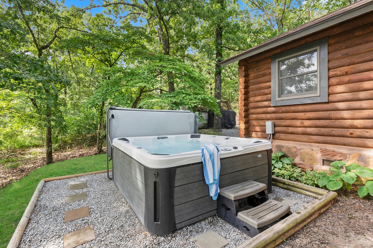 Bienvenido a Cardinal Cabin, su refugio de troncos con acabado de diseñador ubicado en los árboles sobre el lago Hudson en Pryor, OK. Disfruta de un café mientras los ciervos pasean, sumérgete en la bañera de hidromasaje bajo las estrellas centelleantes o comparte historias y s'mores alrededor de la hoguera. Tranquilo y lleno de encanto, este acogedor refugio de 2 dormitorios y 2 baños es la vida en el lago de Oklahoma en su mejor momento.
