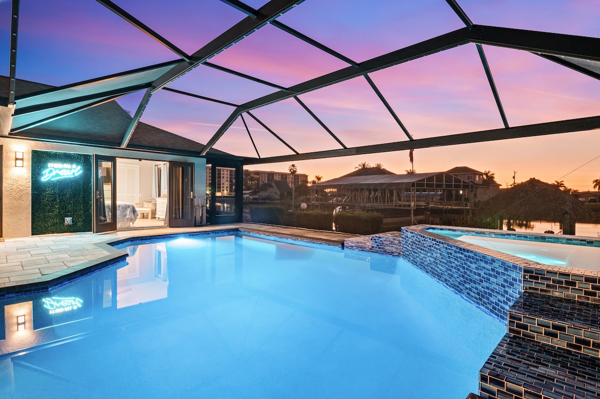 ★ Nueva casa frente al agua de 4 dormitorios/2 baños ★ Mejor valorado por su limpieza y comodidad ★ Piscina climatizada de agua salada y jacuzzi ★ Lanai con mosquitero + parrilla + vistas al atardecer ★ Cocina totalmente equipada y sala de juegos ★ Amplio plano de planta abierto – Capacidad para 12 personas ★ Pesca, fogata y cena al aire libre ★ Relájate bajo las palmeras junto al paseo marítimo ★ A minutos de Cape Coral Beach y restaurantes ★ Cerca de Fort Myers, Sanibel y Gulf Fun ✨ Villa Belleriva: donde el confort, el estilo y el sol de Florida se unen para una estancia inolvidable en el paraíso.