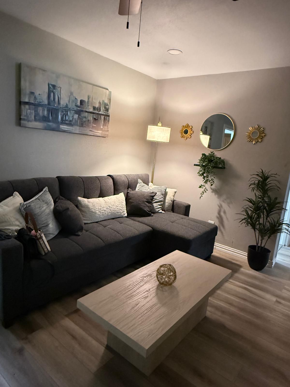 Bienvenido a nuestra acogedora casa de 3 dormitorios y 2 baños, a un paso de parques tranquilos, ideal para familias y grupos. En una zona tranquila, pero a pocos minutos de bulliciosas tiendas y restaurantes, y cerca de las principales empresas como la sede de Toyota. Perfecto para profesionales o familias que buscan un nuevo comienzo, especialmente aquellos afectados por catástrofes, en un distrito escolar de primera categoría. Nuestro acogedor refugio ofrece amplios espacios de estar, una cocina totalmente equipada, garaje para 2 coches y un patio trasero cerrado. ¡Bienvenido a casa!