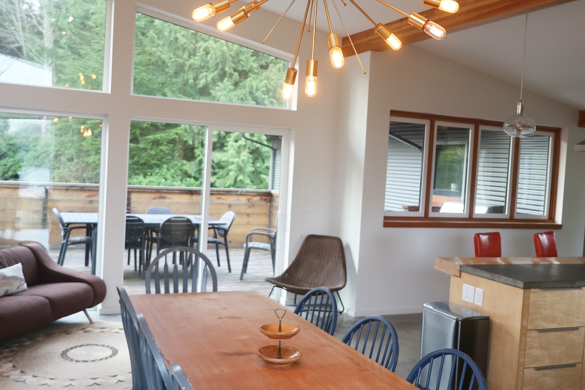 Relájate y disfruta de las vistas mientras disfrutas de las comodidades del hogar. Esta casa está situada a poca distancia a pie del centro de la ciudad de Tofino, con muchos restaurantes y tiendas entre los que elegir. También se encuentra a 5 minutos en coche de algunas de las playas y caminatas más bonitas de la zona. Situada en un barrio muy seguro y familiar, esta casa cuenta con una cocina totalmente equipada y todo lo necesario para que te sientas como en casa.