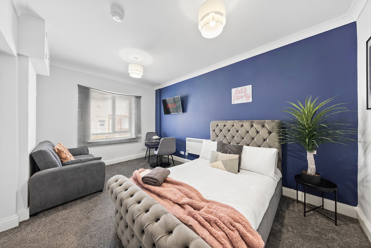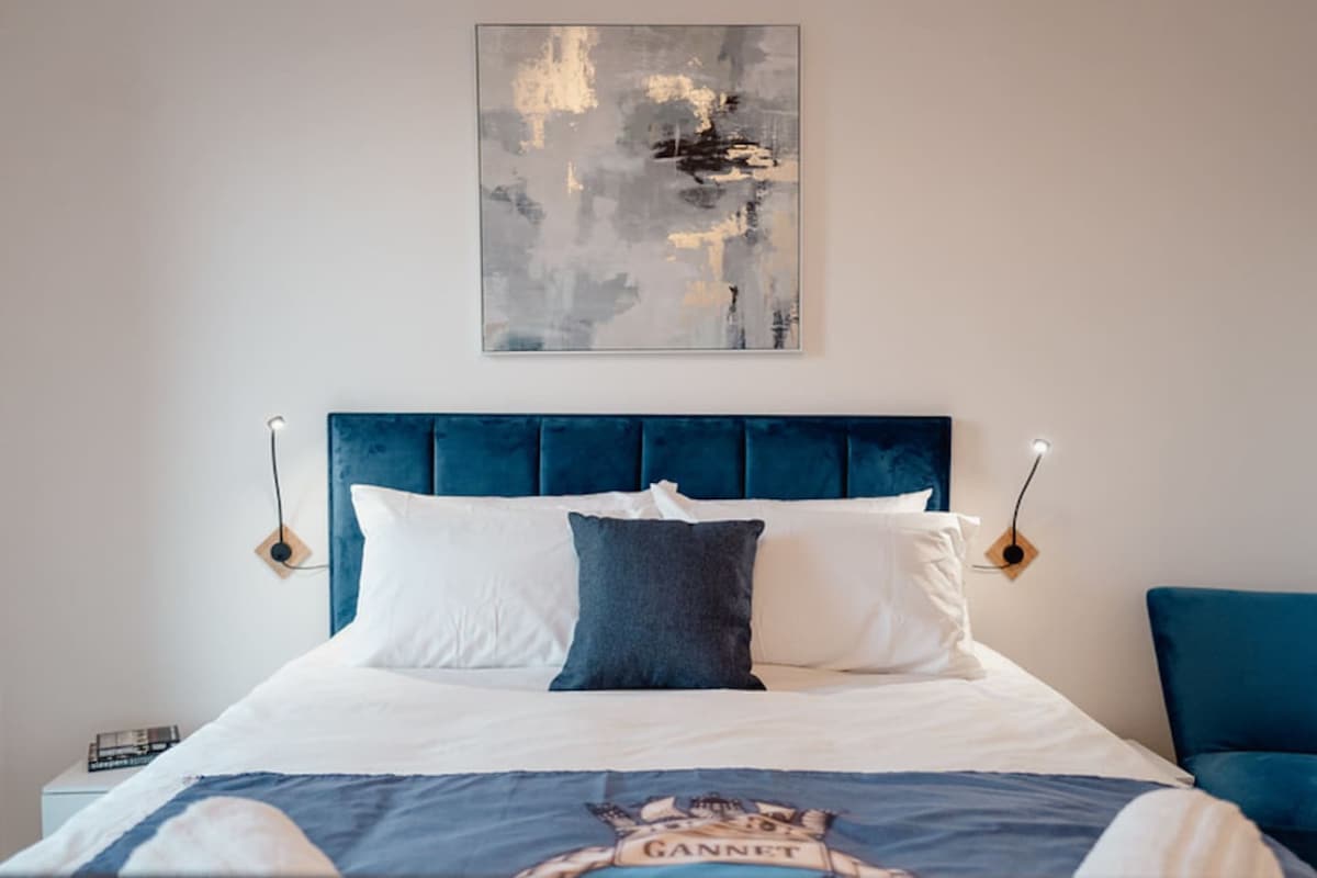 This spacious themed, bright and stylish riverside apartment features 2 bedrooms with king sized beds and own workspace and 2 luxurious bathrooms, perfect for up to 4 guests. Enjoy a cosy living area, fully equipped kitchen, and dining space ideal for unwinding after a busy day. With free parking, a peaceful marina setting, and thoughtful touches throughout. Perfect for long stays, holiday escapes, and contractors looking for a comfortable home away from home. Contact us and get discounts!
