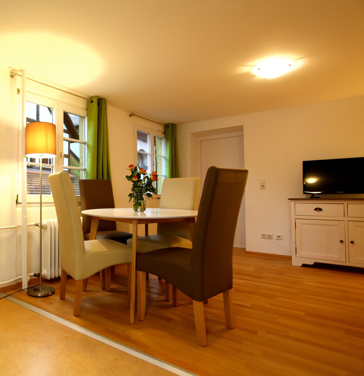 Mi alojamiento (departamento Giulia) está ubicado en el casco antiguo de Meersburg, a un tiro de piedra de los lugares de interés histórico, frente a una calle lateral tranquila y soleada, rodeado de muy buenos restaurantes, cafés, bares, así como museos y varias tiendas. El lago, el barco y el ferry están a 10 minutos a pie, la parada de autobús está muy cerca. Estacionamiento gratuito en un estacionamiento público cercano
