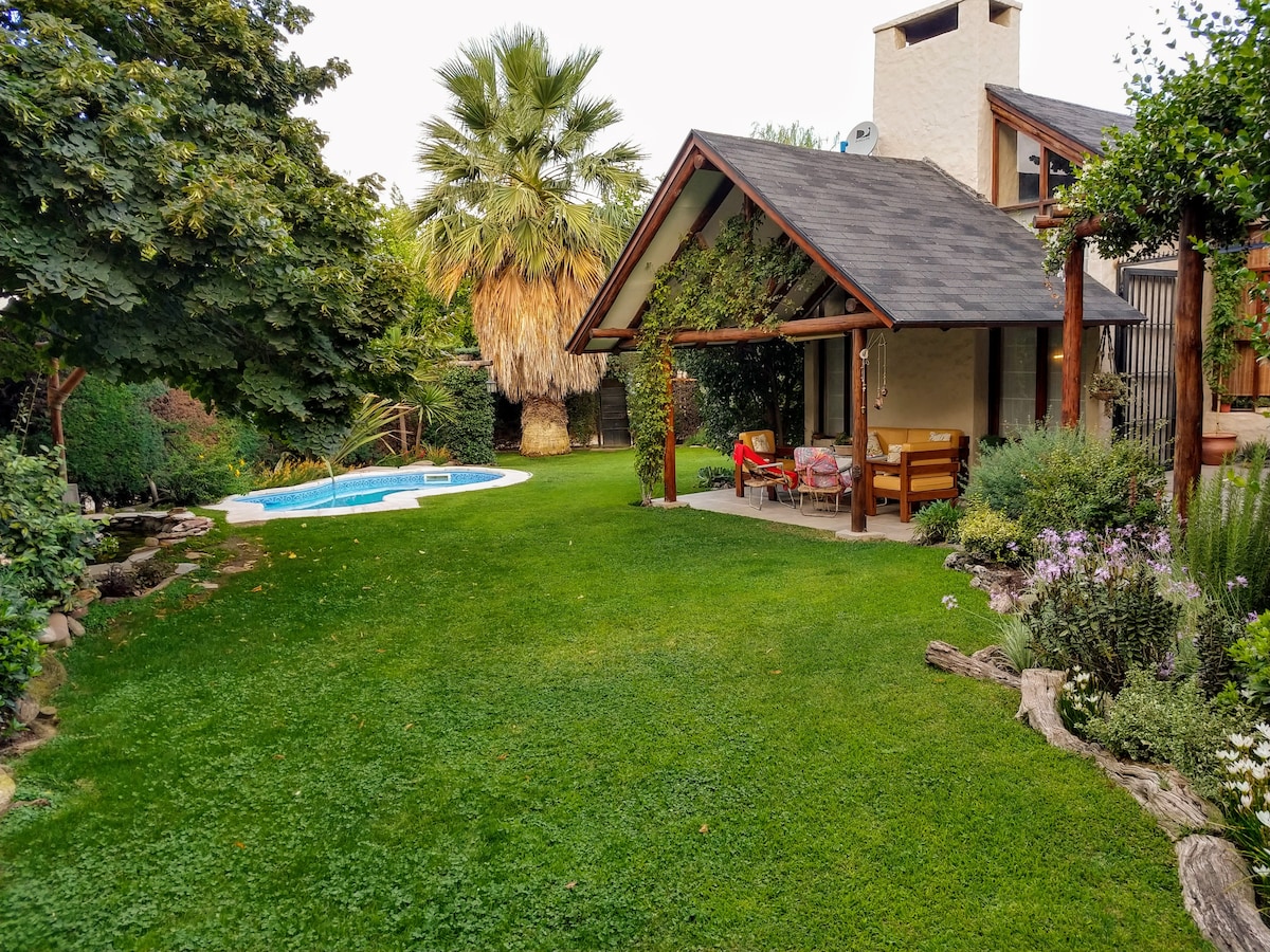 Rodeada de árboles en un amplio parque, esta casa de campo en UCO VALLEY ofrece tranquilidad, privacidad y comodidad con vistas imponentes a la Cordillera de los Andes. En plena zona de enoturismo, con piscina, desayuno incluido, una pintoresca cabaña de caballos criollos y espacios acogedores, es ideal para familias o grupos que buscan descansar y disfrutar de bodegas de prestigio, la mejor gastronomía y actividades al aire libre como cabalgatas, caminatas y noches estrelladas en el jardín.