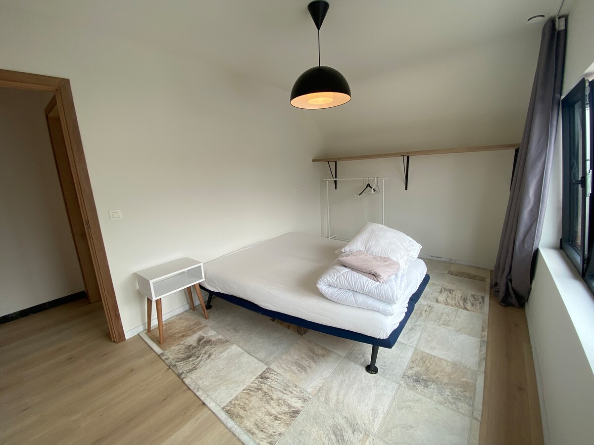 SEGURO PARA EL CORONAVIRUS: NO ENTRARÁS EN CONTACTO CON NINGUNA OTRA PERSONA, NO HAY ESPACIOS COMPARTIDOS. Acogedora casita, construida en un antiguo establo. Donde solía haber heno ahora hay un dormitorio, y donde vivían los animales ahora se instalan las personas. Todo se ha renovado según estándares modernos y ecológicos. El antiguo estilo interior se ha conservado, por lo que se ha convertido en una casa acogedora. Está tranquilamente ubicada, en el campo en el límite de Waregem, con vistas al campo. Podrás disfrutar de esta paz en el jardín.