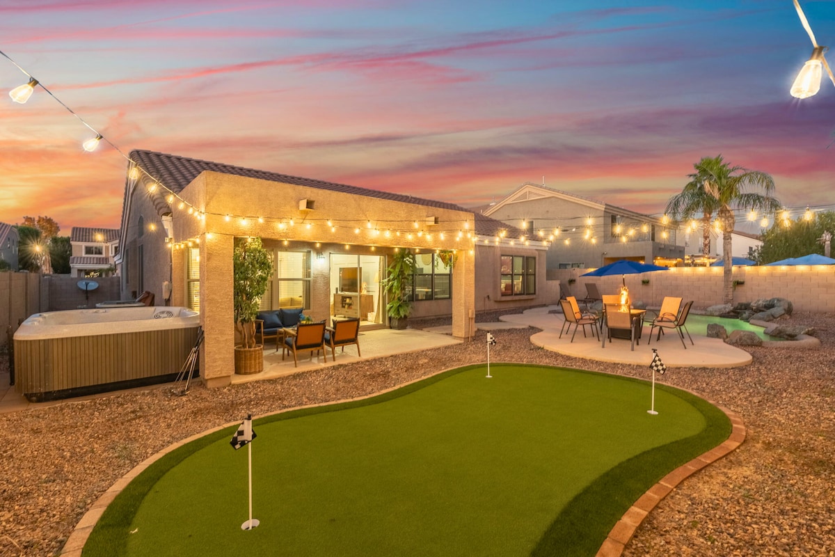 ¡Bienvenido a Gilbert! Esta casa privada de 3 dormitorios y 2,5 baños ofrece una amplia sala de estar con cocina completa, lavandería y muchas comodidades. El patio trasero recién renovado incluye piscina climatizada, barbacoa incorporada, chimenea, sistema de altavoces y putting green. ¡La sala de juegos del garaje separada incluye ping pong, dardos y futbolín! El centro de Gilbert y Freestone Park están a la vuelta de la esquina. ¡Estás a pocos minutos de atracciones como Top Golf, PHX Zoo, Scottsdale, campos de golf, Talkingstick Casino y Chase Stadium!