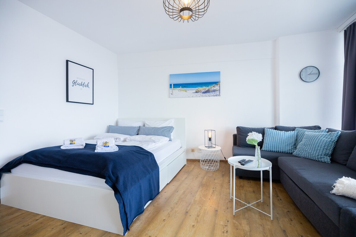 Die Unterkunft verfügt über ein Schlafzimmer sowie einen abgetrennten Wohnbereich mit zusätzlichem Schlafplatz und Arbeitsplatz – ideal für Paare, Familien mit einem Kind (2 Kleinkinder) oder zwei Erwachsene, die lieber in getrennten Zimmern übernachten möchten. Erlebe Augsburg direkt vor der Tür: Der Rathausplatz liegt unmittelbar vor dem Apartment. Cafés, Restaurants, Straßenmusik und Sehenswürdigkeiten machen den Aufenthalt zu einem echten Städtetrip-Erlebnis.