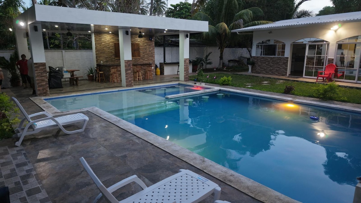 Una encantadora villa familiar que se encuentra en una de las playas más hermosas de El Salvador, Metalio. Literalmente, estarás a solo un par de pasos del Océano Pacífico. Te va a encantar nuestro alojamiento por su cómoda configuración, su refrescante piscina y sus hermosas vistas. ¡La villa es ideal para familias (con hijos) y para parejas que quieren relajarse! ¡También se admiten mascotas! Lo sentimos, no se permiten eventos, fiestas ni mascotas, y no están disponibles para grupos de adultos jóvenes menores de 25 años (a menos que sea un viaje familiar). Gracias.