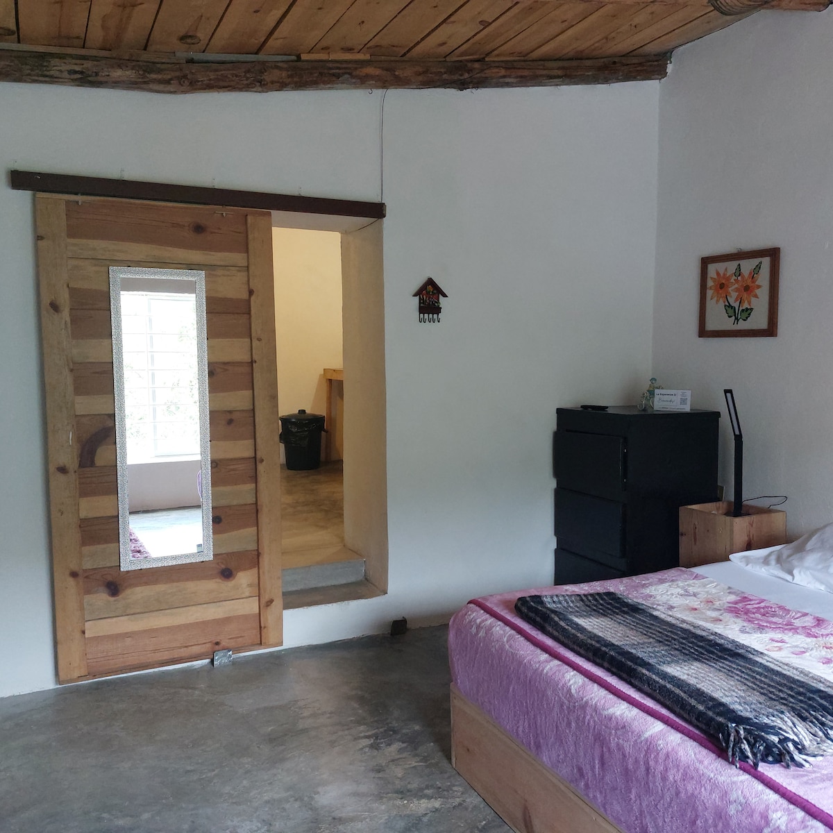 Enjoy an unforgettable stay at our Cabaña Morada/Purple Cabin Downstairs Bedroom with double bed with Loft style sleeping area upstairs with a double and single bed. Full Bathroom, Livingroom. Back deck to enjoy the view of the Valley and Pool everything you need to cook and have a comfortable stay. *Please note that there are steps to go the sleeping loft and ceilings are lower. *there is a switch to turn on the bomba/pressurized water in the bathroom please turn on/off for shower use.