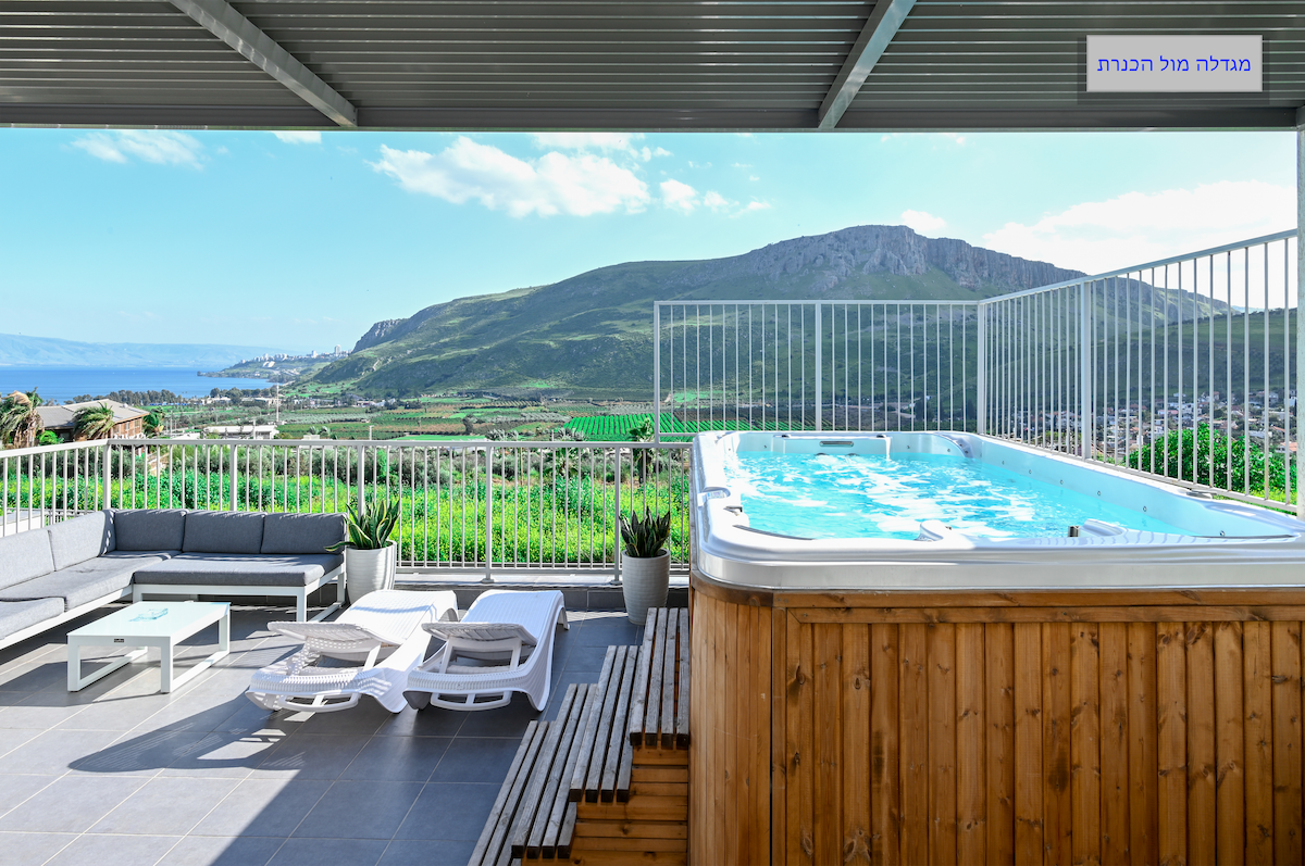 Bienvenido a Magdala Suite, una escapada de lujo con una piscina de chorros y unas impresionantes vistas del Monte Arbel y el Mar de Galilea. La suite incluye una acogedora sala de estar con un sofá cama, una cocina totalmente equipada, un dormitorio principal con balcón y baño privado, un dormitorio adicional y una terraza con piscina privada Ideal para parejas y familias que buscan comodidad y relajación en el norte de Israel. Disfruta de mañanas tranquilas, aire fresco y un entorno tranquilo a pocos minutos del mar de Galilea para una verdadera estancia en Galilea