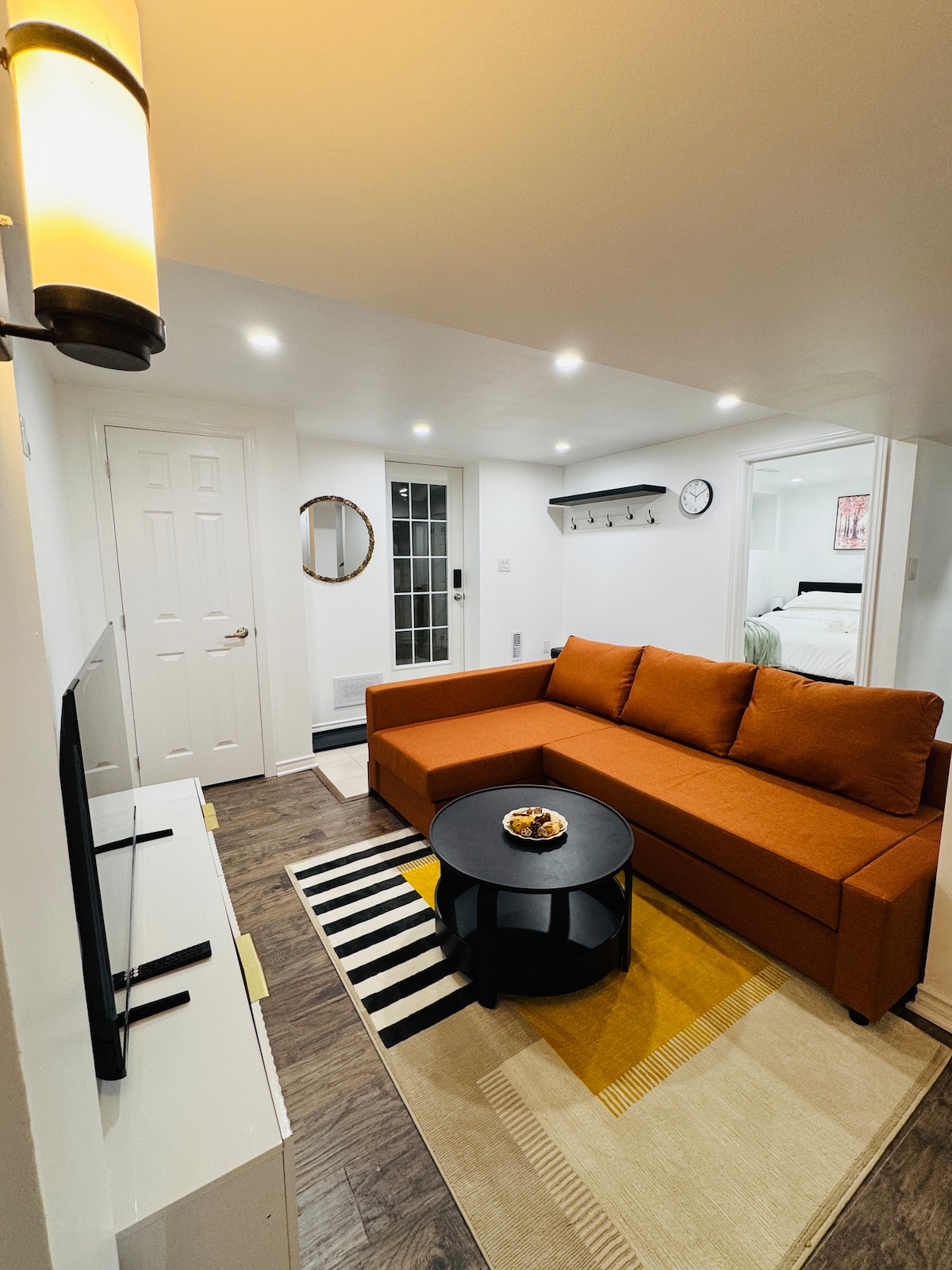 Enjoy your stay in this brand new, bright and modern 1-bedroom basement apartment, with a queen size bed , perfect for families, professionals, or tourists. The apartment features a cozy bedrooms, a fully equipped kitchen, a living room with comfy seating, dedicated dining area and large windows filling every room with natural light. The apartment is minutes away from local parks, shopping, restaurants, and quick highway access for exploring the GTA. No smoking, No pets or parties allowed.