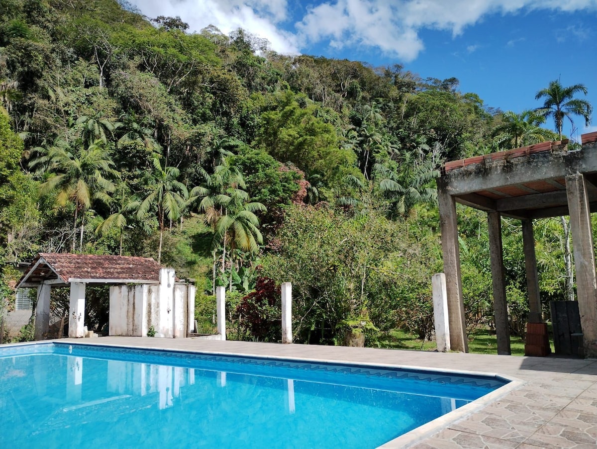 Sitio en Juquitiba con Wi-Fi, piscina y huerta