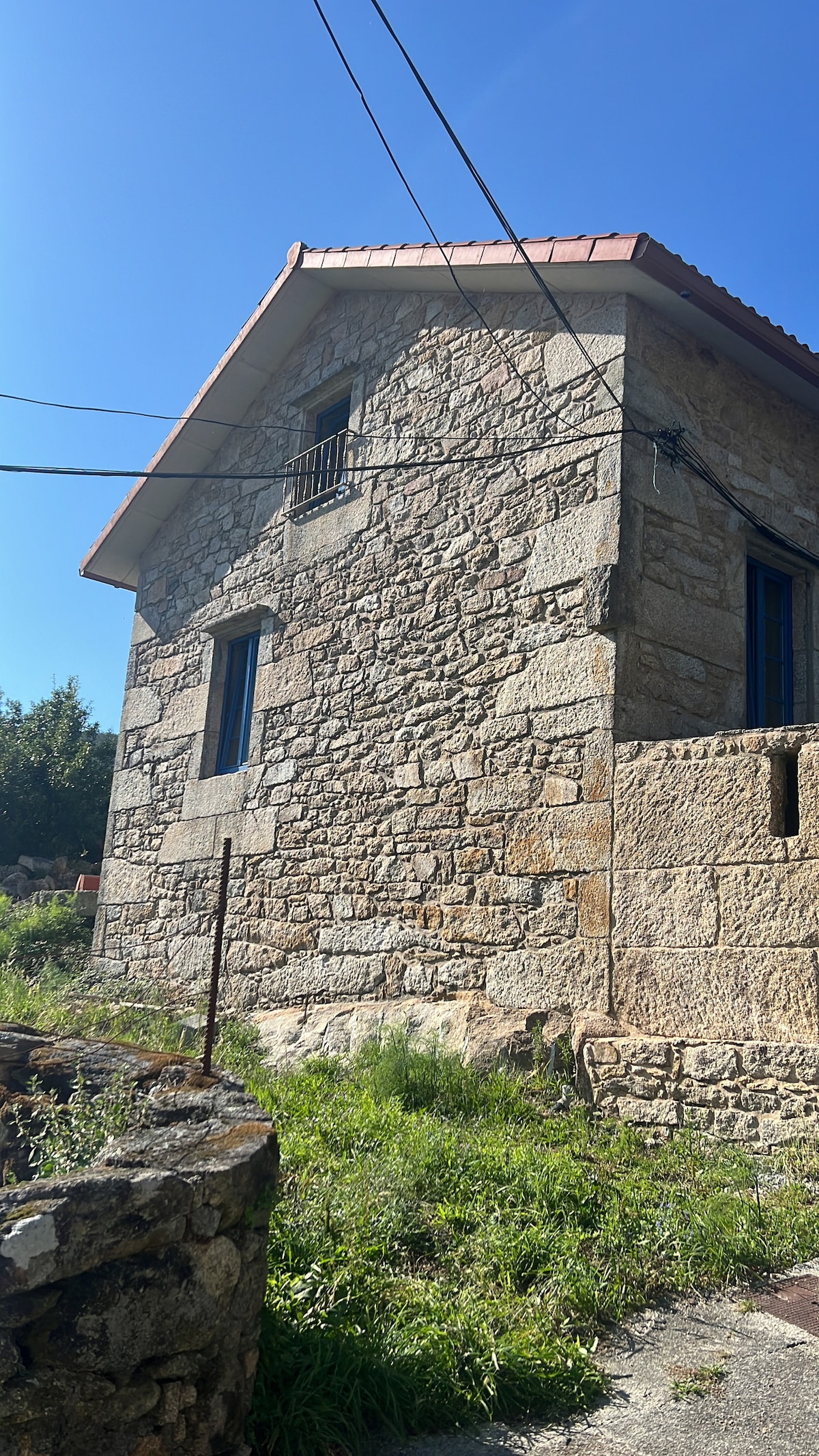 Refugio: arquitectura tradicional entre rutas de senderismo (A Moa ( Red Natura), Aguillóns, Camiño dos Costados), paseo enmarcado por muros de piedra rodeados de hórreos y al fondo la inmensa playa de Carnota, Boca do Rio y su marisma (a 10mn andando desde el refugio). Situado al abrigo del Monte Pindo, construido e 1920, pensado y restaurado 2021 como un espacio duradero donde el tiempo se detiene. Terraza abrigada del viento por muro de piedra a la sombra de higueras y laureles centenarios.