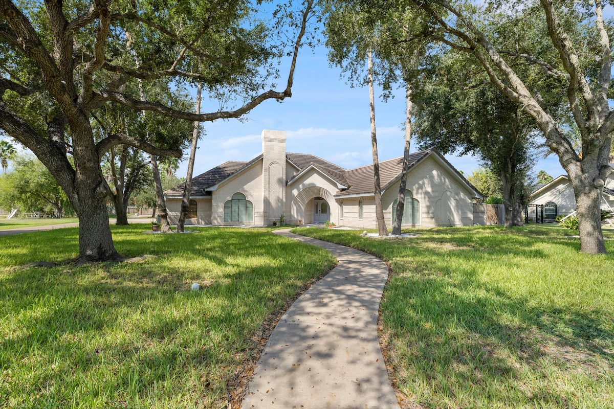 ¡Relájate con toda la familia en esta espaciosa casa de concepto abierto con una gran piscina y un luminoso solárium! Convenientemente ubicado cerca de la Universidad del Valle del Río Grande y una variedad de restaurantes populares. A solo 16 minutos del centro comercial La Plaza y cerca de las ciudades circundantes, como McAllen, Mission, Pharr y San Juan, lo que lo convierte en el lugar central perfecto para tu estancia.