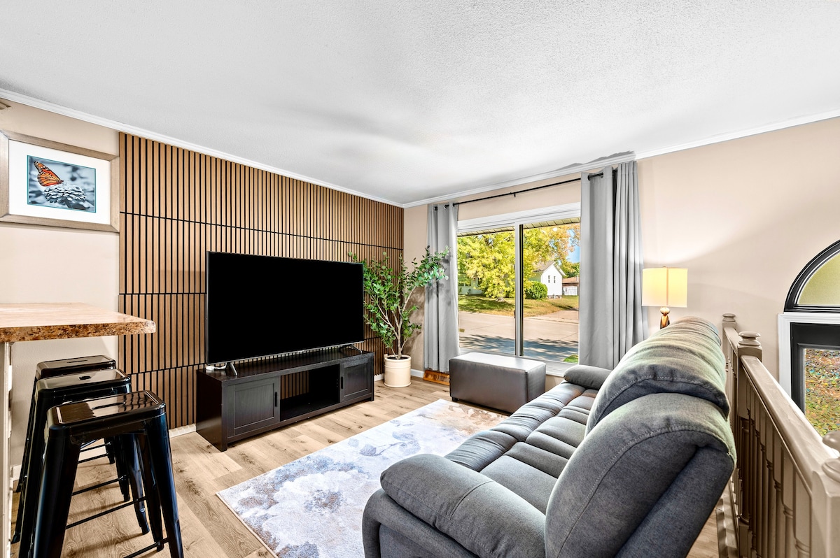 Esta casa de campo de Bettendorf de 3 dormitorios recién reformada está totalmente equipada y tiene una ubicación céntrica, con fácil acceso a ambos lados del Misisipi. Listo para tu estancia personal o de negocios, este alojamiento cuenta con muebles nuevos, cocina, baño y suelos nuevos en todo el nivel principal. Relájate y desconecta mientras estás acurrucado frente al televisor inteligente de 55 pulgadas, o simplemente trae tu propio dispositivo y conéctate al wifi de fibra rápida de toda la casa. ¡Te damos la bienvenida a Bettendorf y a todas las ciudades cuádruples!