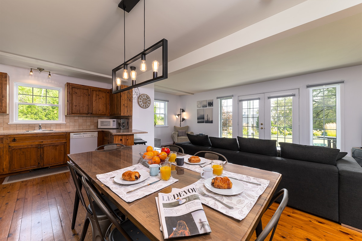 Les Hibiscus est une maison qui rappelle les habitations d’autrefois, avec ses pièces bien pensées, son toit en pente et une terrasse ouverte sur l’extérieur. Entre spa, coin feu et présence du fleuve tout près, c’est un refuge simple et lumineux au cœur d’un quartier paisible de La Malbaie. Parfait pour décrocher et profiter du rythme doux de Charlevoix.