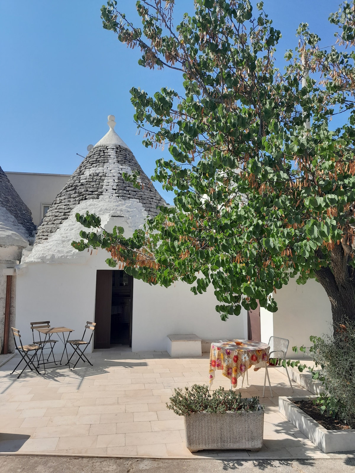 Decorado con estilo respetando las características de los «trulli», alojamiento equipado con aire acondicionado y calefacción, con la posibilidad de usar la cocina equipada con vajilla, nevera, TV en todas las habitaciones, con cenador exterior donde podrás relajarte y disfrutar de la belleza del lugar, sofá cama con la posibilidad de añadir bajo petición una cuarta cama gratis. Baño de piedra típica equipado con ducha, inodoro, lavabo y accesorios: secador de pelo, ropa de cama, toallas y juego de baño.