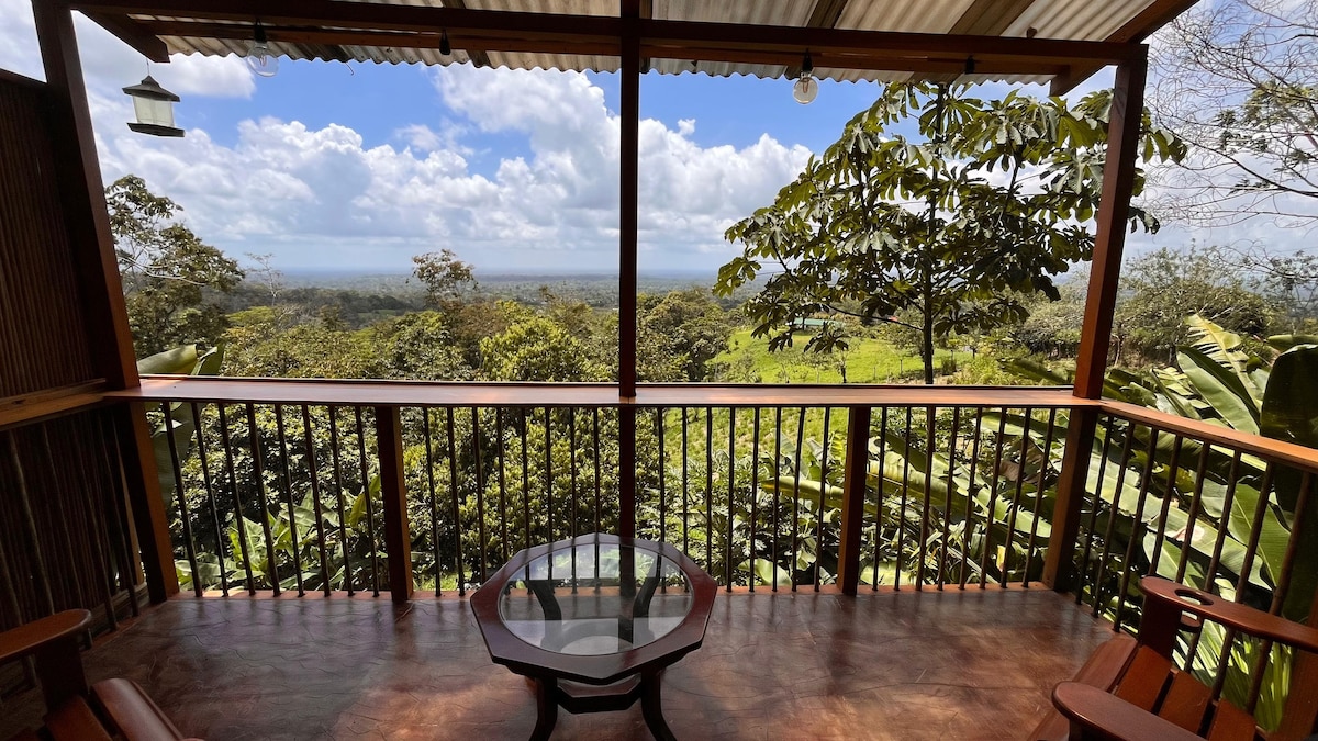 Welcome to Tres Volcanes, a luxury wood & glass Cabin located within a 56 acres ranch. Strategically built at the highest point of the property, from where you can see the Arenal, Tenorio and Rincón de la Vieja volcanoes on the horizon. You will be able to rest with the sound of the river that passes at the foot of the mountain and wake up to have a cup of coffee while the mist disappears through the treetops. Just in time to walk to the dairy and experience milking by your hands & collect eggs.