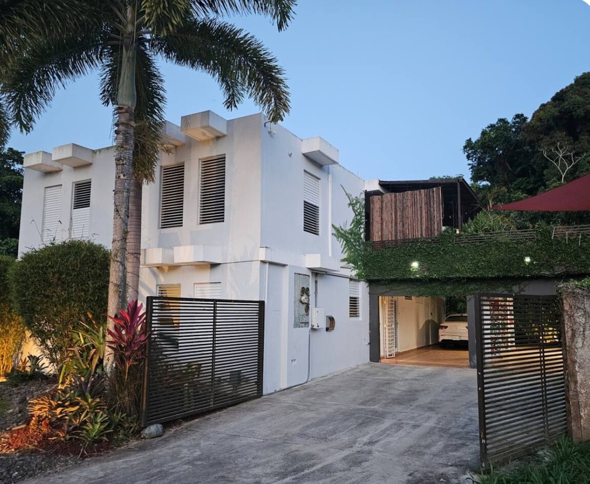 Relájate en un pacífico lugar. Está localizado en un área residencial con guardia de seguridad y rondas preventivas. The casa tiene 3 cuatros y una gran terraza. En el patio se encuentra el bosque donde pueden leer, jugar ajedrez, meditar y hacer yoga para calidad de tiempo con familia y amigos. Disfrute de observar pájaros y de noche apreciar en cantar de los coquies, las ranas nativas. Esta rodeada de arboles frutales. WI FI muy bueno y GoggleTV. AC en cuartos.