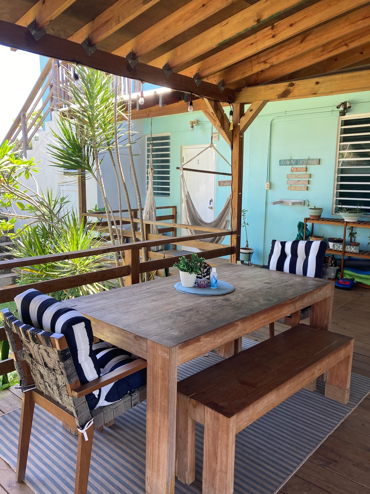Jobos Vacation Rentals is conveniently located right on Jobos Beach. At only a few paces or minutes by car to the best surfing spots, scuba diving, paddle board or just relax at one of our breathtaking beaches. Walk to Jobos, Pozo de Jacinto and the lovely Paseo Tablado, a boardwalk with the incredible views that surround us. Tropical restaurants with ocean views will entice your palate just steps from the Studio. View the magical and spectacular sunset while enjoying a refreshing coconut water.
