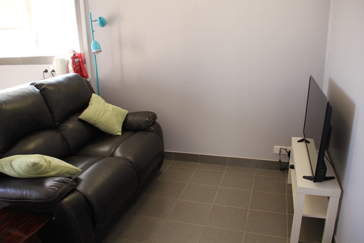 Spend your Airbnb getaway at this Unit in Wallaroo. The unit is open plan with a step-up bedroom with queen bed, lounge area with 50” TV, dining and kitchenette area and a private outdoor courtyard area with table and bench chair. The unit is conveniently located near Wallaroo’s popular tourist attractions and main street. Guests have the whole place to themselves. This includes a bedroom, a bathroom and kitchen. There is roadside parking only.