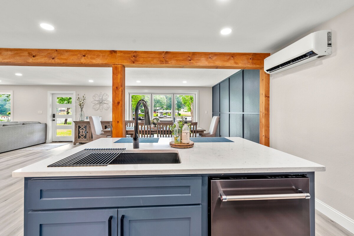 Lujosa casa frente al lago con rampa para barcos, kayaks, parrilla y cama tamaño king