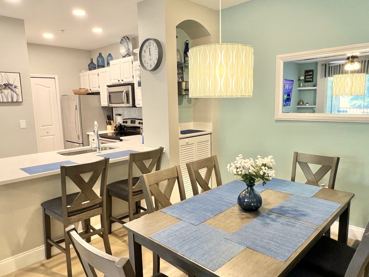 Bienvenido a Runaway Beach Club, ¡tu escapada tranquila a solo unos minutos de la magia! Con techos altos y aireados y una decoración al estilo de Cayo Hueso, te sentirás como en casa desde el momento en que entres. Tanto si estás visitando parques temáticos como si solo quieres relajarte, este acogedor refugio está escondido del caos pero cerca de todo. Ideal para parejas, familias pequeñas o viajeros de negocios. ¡Reserva tu estancia y relájate en tu propio pedacito de paraíso privado!