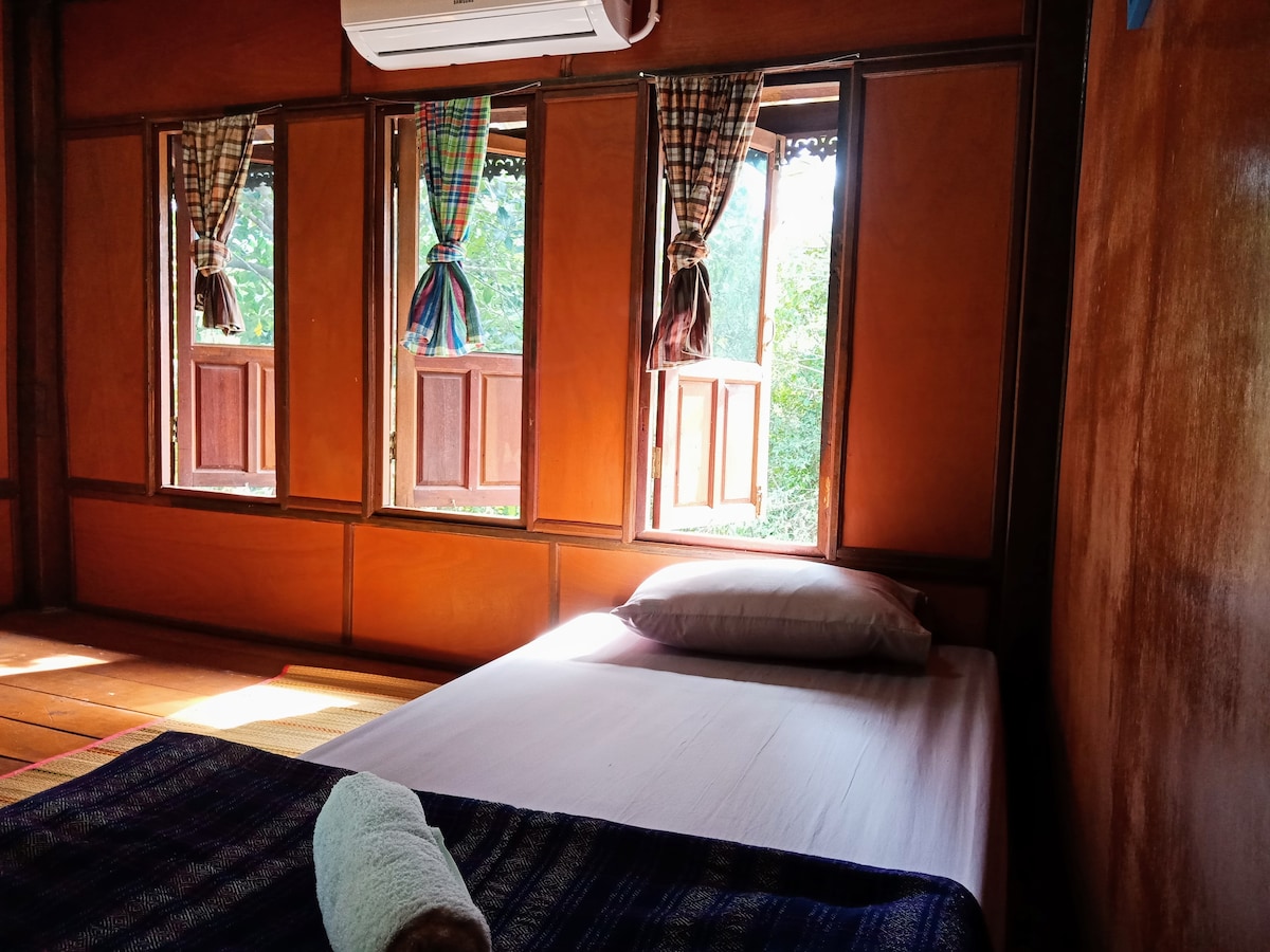 Mali-Boonma Farmstay, situado en el distrito de Huay Thap Tan, en la provincia de Sisaket, es ideal para que los turistas se relajen. El complejo de la casa está rodeado por los encantos locales de arrozales y un gran lago donde los huéspedes pueden disfrutar de paseos por la mañana y por la noche. La casa de 2 dormitorios con aire acondicionado y 1 baño con cocina de estilo local, comedor y una amplia sala de estar con capacidad para hasta 4-8 personas, por lo que es ideal para familia y amigos.