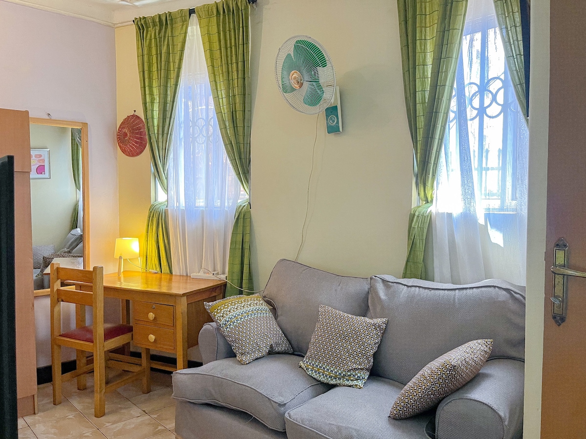 Este estudio en la azotea en Gaba ofrece unas vistas realmente impresionantes. Desde tu lugar elevado en el quinto piso (azotea), tendrás una vista clara de las aguas resplandecientes del lago Victoria y Munyonyo. Prepárate para amaneceres inolvidables y noches estrelladas desde tu punto de vista especial. Es perfecto para parejas, viajeros solos o cualquier persona que busque una escapada tranquila con vistas sin gastar mucho dinero.