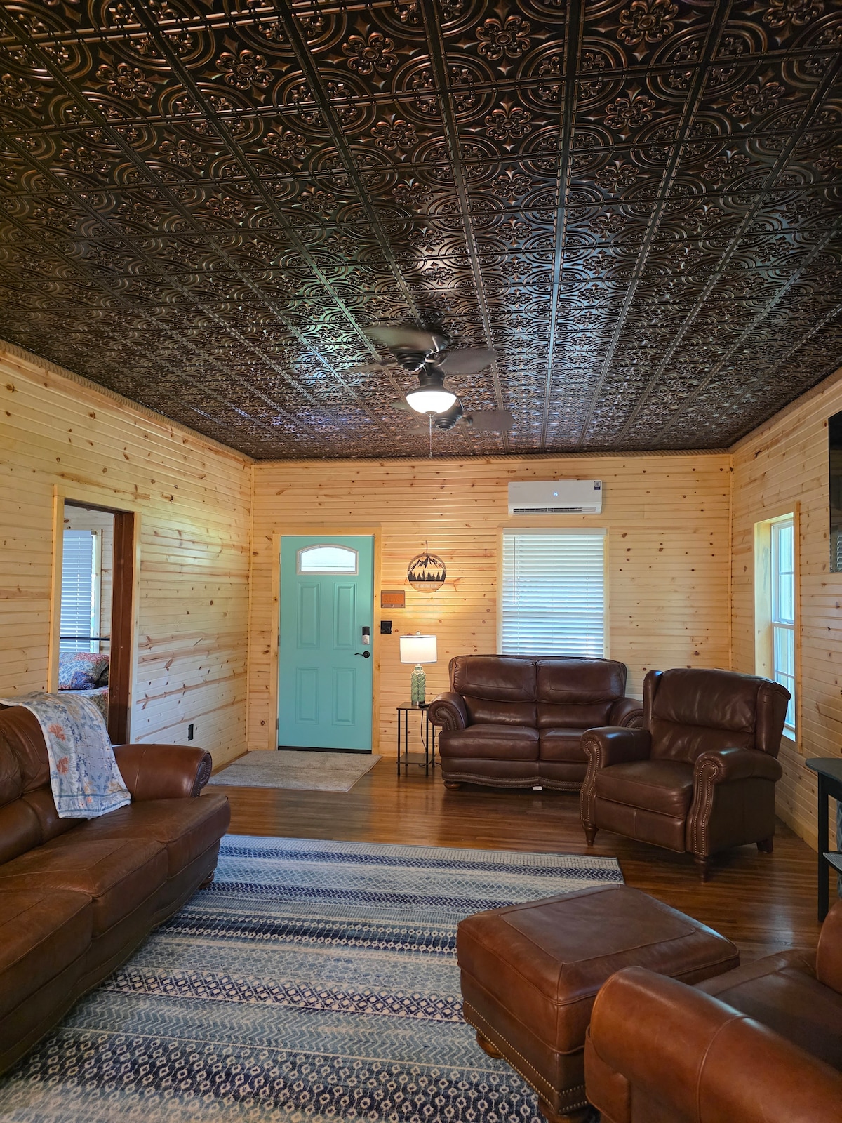 Esta cabaña de madera de una sola habitación tiene vistas a nuestro lago de 35 acres e incluye una chimenea al aire libre, una pequeña terraza con mecedoras, chimenea interior, cocina eficiente con horno Y nevera pequeña Y un NUEVO SISTEMA DE CALEFACCIÓN DE AGUA. Esta cabaña está a 30 yardas de nuestro centro de conferencias y eventos. Si tenemos un evento, es probable que veas y escuches a los huéspedes y al personal ir y venir.