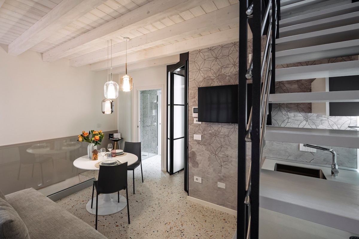 El suelo de madera con calefacción y la sala de estar con vigas a la vista hacen que el alojamiento sea muy acogedor. La terraza en la planta te permitirá almorzar y cenar al aire libre entre los tejados de Venecia. Lancha Alilaguna AEROPUERTO - S. STAE (punto de encuentro). S. STAE es la parada n.º 5 en el Gran Canal. A tu llegada, se debe pagar el impuesto turístico municipal equivalente a: 4,00 € por persona y noche de estancia; 2,00 € para jóvenes de entre 10 y 16 años (no cumplidos)