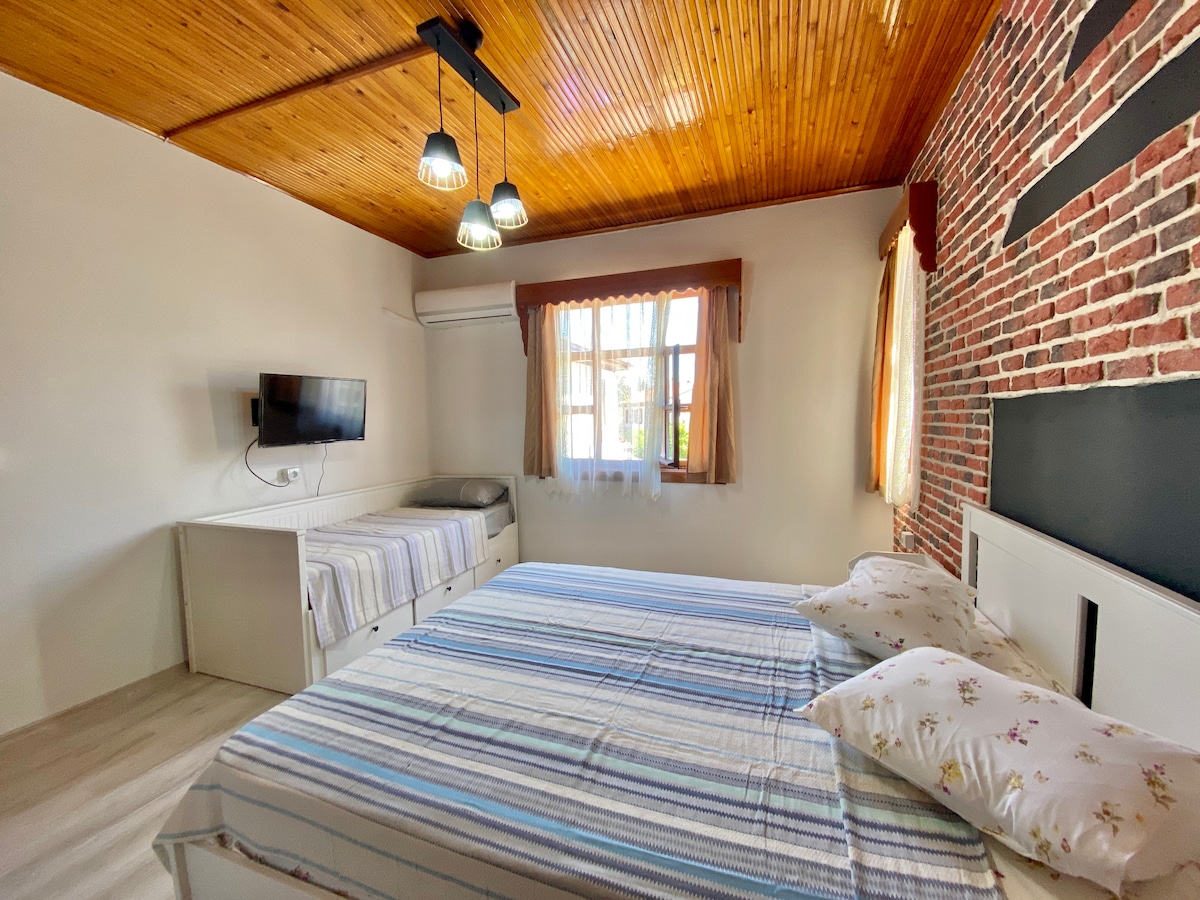 Mi casa es una casa antigua con 2 plantas para un máximo de 5 personas con sus 2 dormitorios, 1 sala de estar, 1 cocina, 2 baños, 1 jardín y 1 terraza. Para que te sientas como en casa con los familiares y los amigos. En la casa puedes encontrar todo lo que necesitas. Se puede llegar al dormitorio de arriba desde las escaleras del jardín. Yo mismo diseñé la casa. Tiene un aspecto histórico con madera rústica y camas cómodas y acogedoras. Hay aire acondicionado en ambos dormitorios y en la sala de estar con opciones frías y calientes.