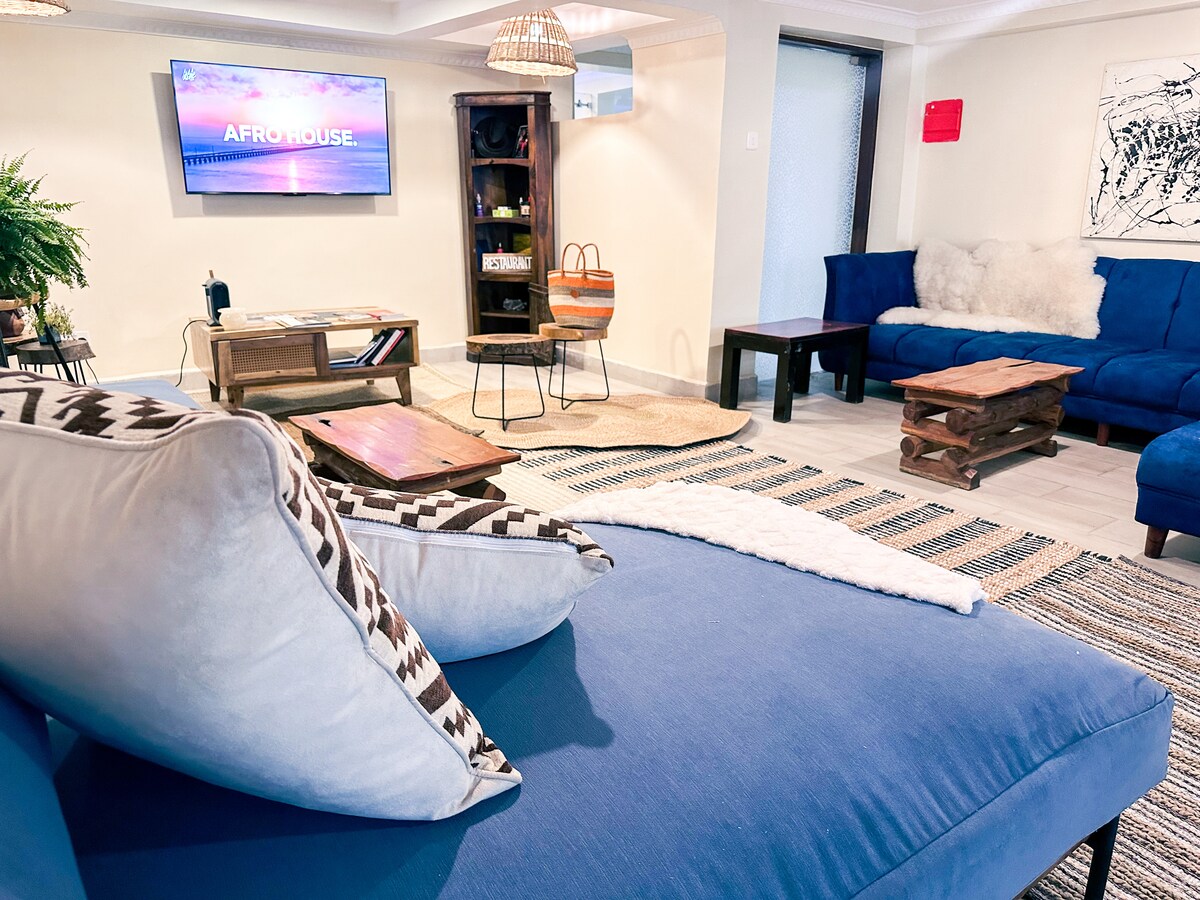 Afrika House, located in serene Langata Hardy, is Nairobi's top boutique art accommodation where contemporary African art meets thoughtfully designed hospitality, offering immersive creative experience for artists, travelers, and anyone seeking beauty and inspiration. Choose from four individually designed rooms, all ensuite (two with private balconies), all with curated original artwork, comfortable beds with premium linens, premium toiletries, and peaceful spaces ideal for rest or creativity.