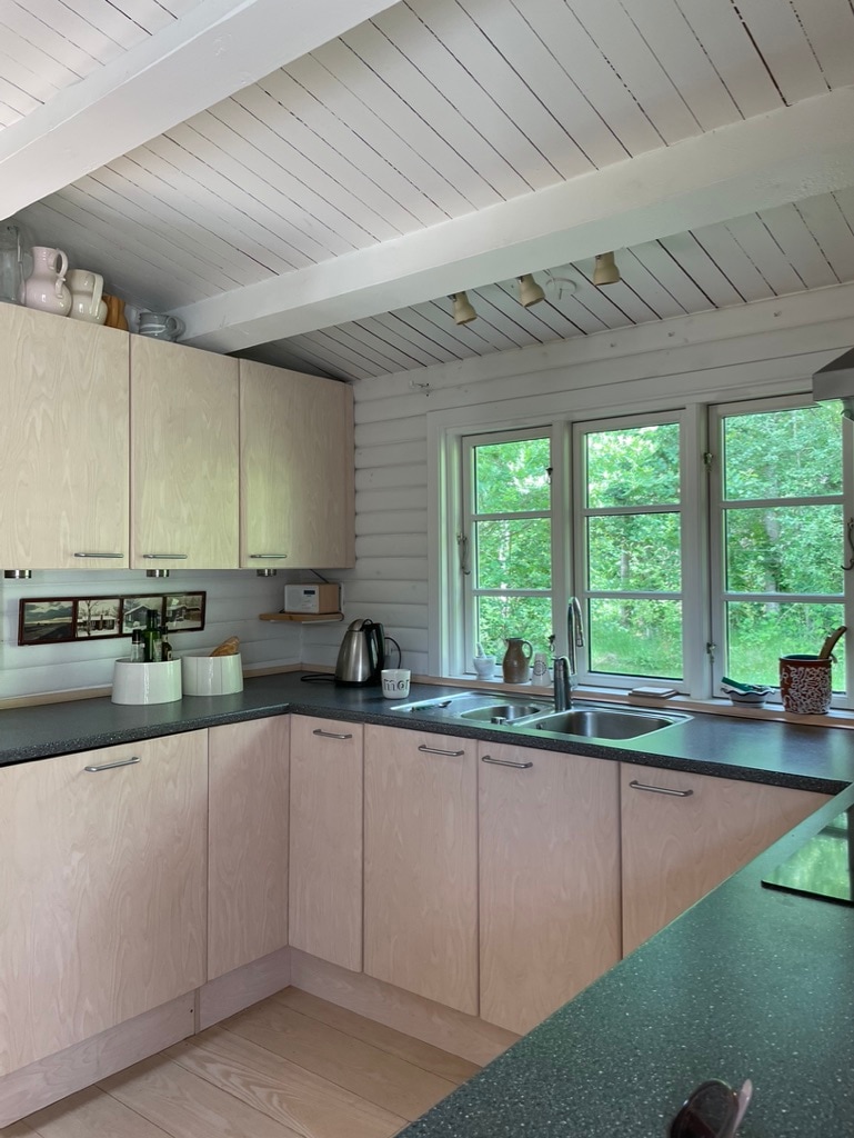 La casa de Kjelds es un pequeño centro vacacional recientemente renovado con cocina comedor, estufa de leña, sala de estar y nicho con una cama doble. Un moderno inodoro con descarga, baño al aire libre, habitación con litera con 2 camas tienen entradas independientes. Hay bicicletas gratuitas disponibles y una amplia terraza con un bonito refugio conecta todos los edificios. En el borde de un claro en la gran parcela de bosque y vida silvestre hay un pequeño sitio para fogatas. Aquí podrás disfrutar de la puesta de sol y con un poco de suerte ver ciervos y aves rapaces.