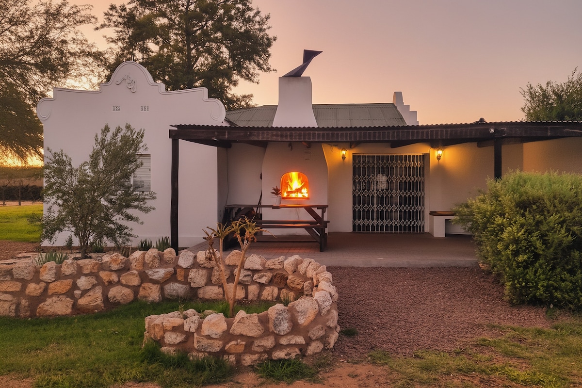 Declarado patrimonio patrimonio y granja renovada de 1893. Situado en los establos con vistas a la arena de doma y a los potreros. Autoservicio con géiser y estufa de gas, nevera, horno microondas, etc. Un entorno tranquilo y seguro: puerta de control remoto y valla eléctrica. Jardín propio, apto para mascotas. Propia zona de braai: trae tu propio carbón. Capacidad para 6 personas. Descuentos para estadías de larga duración aplicables. Caballos de librea en las instalaciones. Paseos a caballo disponibles en la zona. Wifi gratis en la zona de la casa de huéspedes.