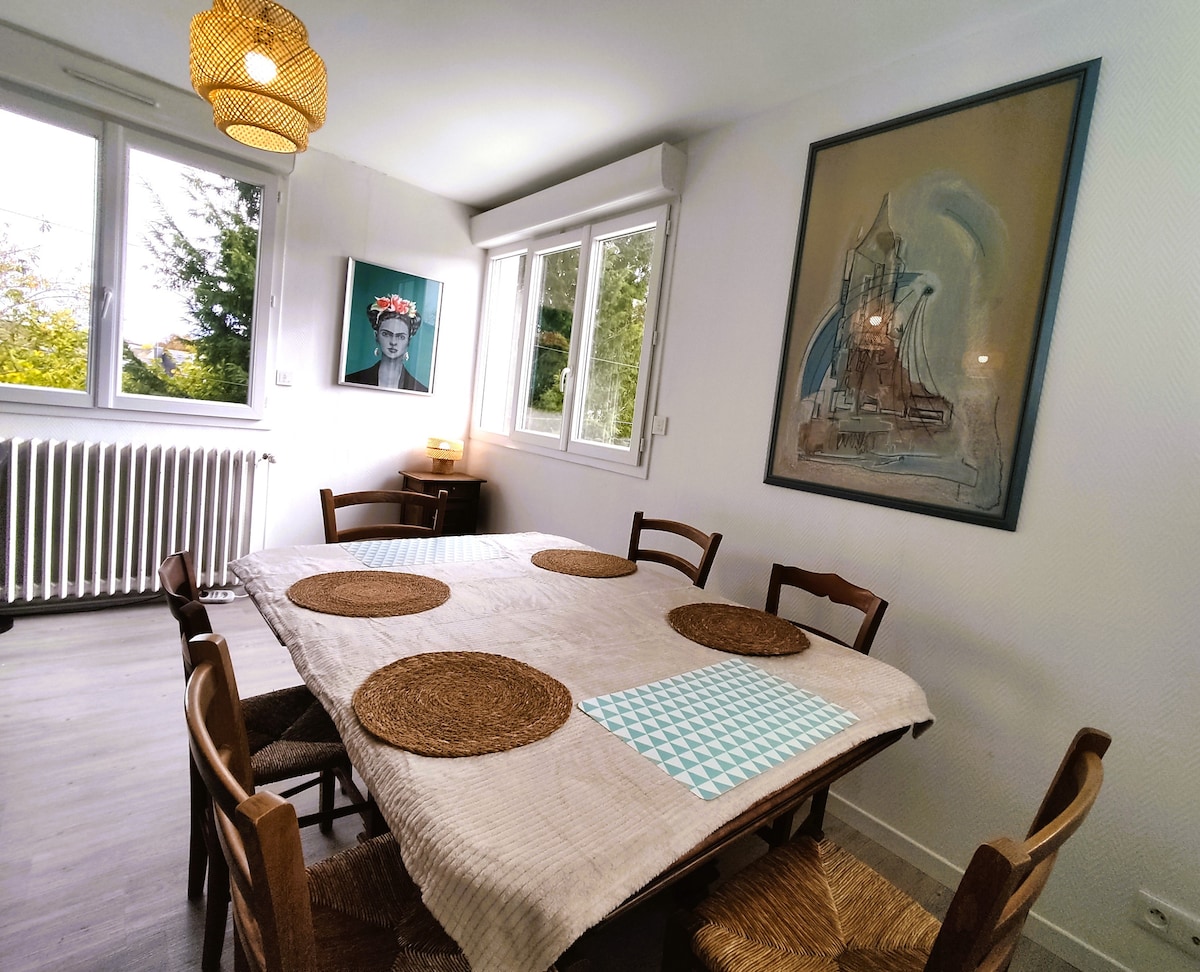 Se trata de mi segunda residencia, 100 % equipada. ☺️ Cerca del pueblo (todos los comercios están a poca distancia: restaurantes, farmacia, panadería, estanco, Intermarché/Biocoop abierto los domingos por la mañana...). Cerca de Erdre (5-10 minutos a pie), ¡un camino le llevará al parque de la Roseraie (cerca de Beaujoire) o Chantrerie! Transporte público: autobús 75, chronobus C6 y tranvía línea 1. Coche: acceso norte a través de la A11 y sur a través de la carretera de circunvalación. 1 plaza en el sótano seguro 🤗 ¡No se permiten fiestas!